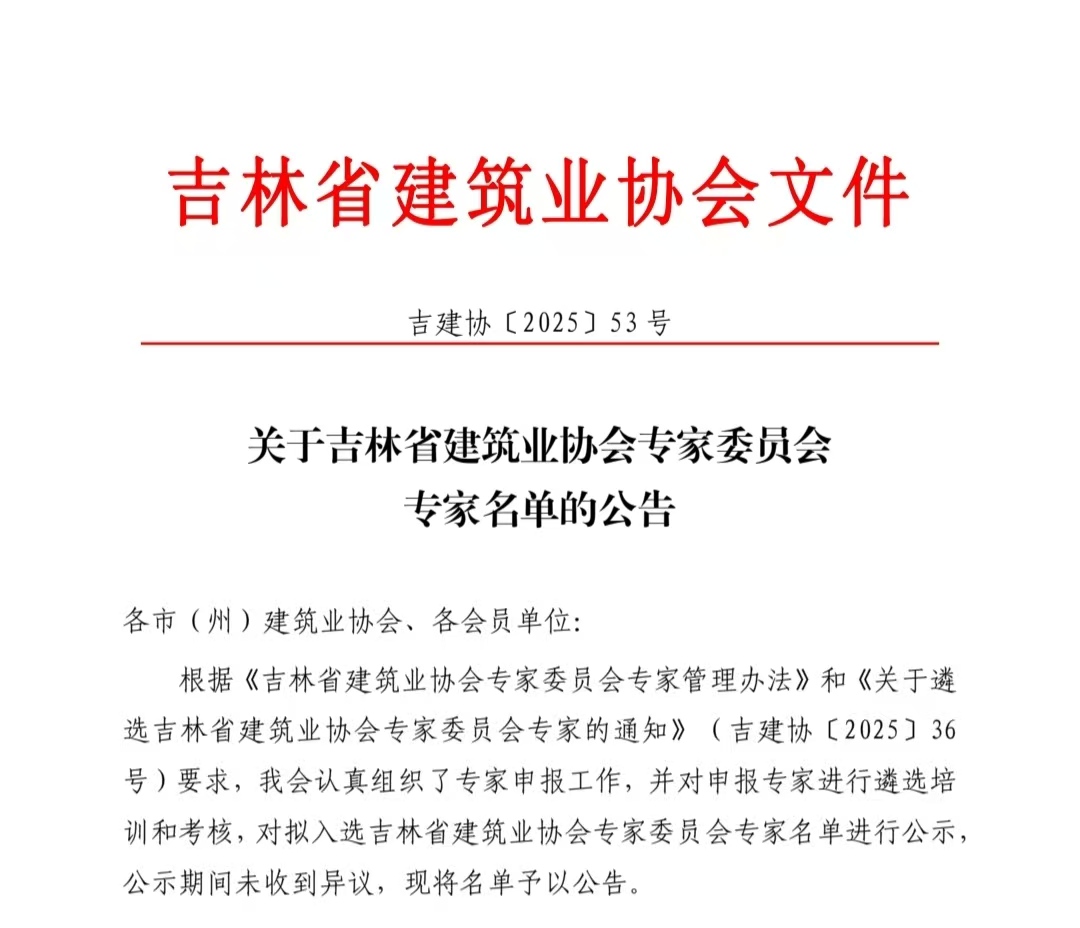 关于吉林省建筑业协会专家委员会专家名单的公告